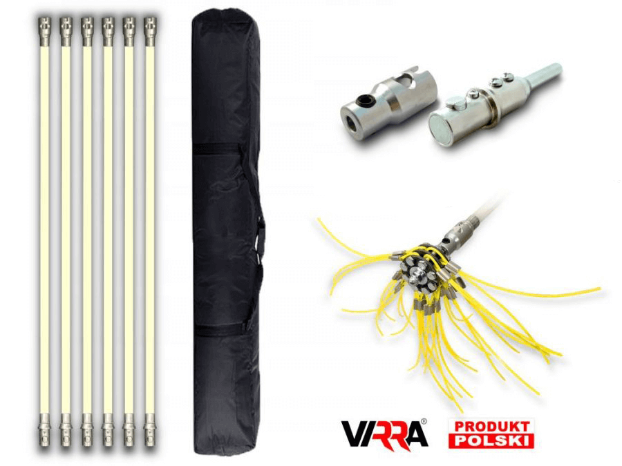 Gotowe zestawy Virra Click do czyszczenia kominów od dołu. Przeznaczone do czyszczenia różnych typów kominów o różnej długości. Możliwość dopasowania zestawu czyszczącego z dokładnością do 1m. Duży wybór dedykowanych głowic czyszczących Virra z wymiennymi wkładami.